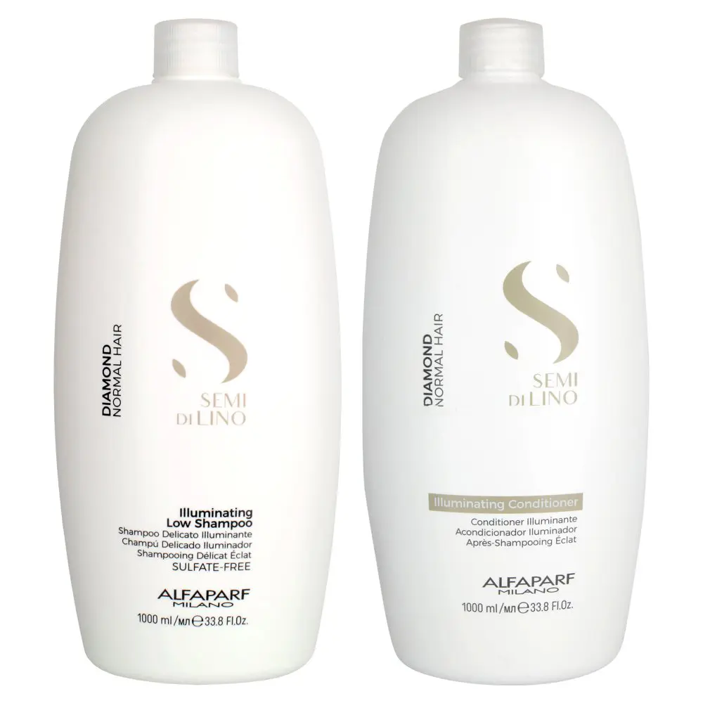 The Alfaparf Semi di Lino Diamond Illuminating Low Shampoo is n exquisite sulfate-free shampoo infused with the brilliance of diamonds. This extraordinary cleanser effectively purifies your hair while bestowing a remarkable 24-hour brightening effect from root to tip. Crafted with a cutting-edge anti-pollution shield, it provides comprehensive protection for your tresses. Furthermore, its integrated UV filter and antioxidant properties safeguard the longevity of your hair color, ensuring its enduring beauty. By replenishing the hair fiber's antioxidant energy, this remarkable shampoo enhances the luster of your locks by an impressive 37%!