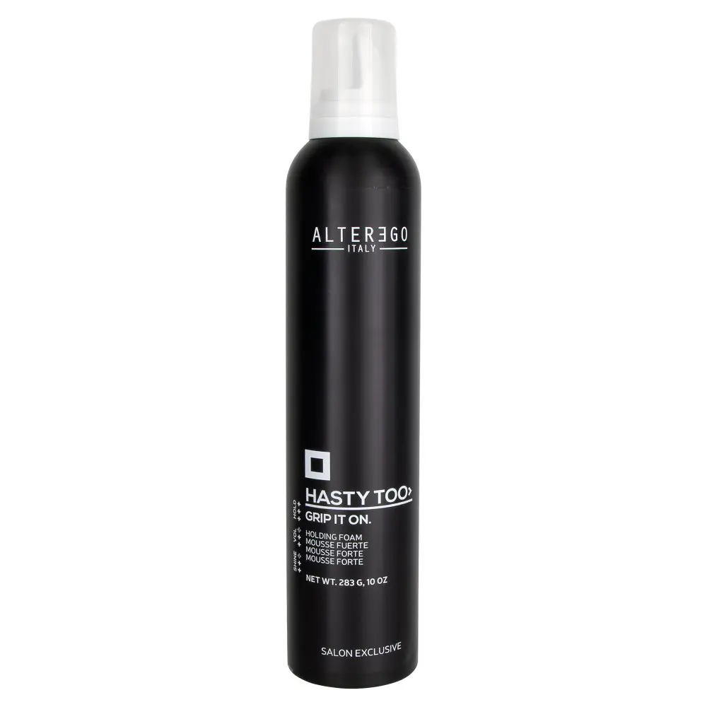 The Alter Ego Hasty Too Grip It On Holding Foam is a strong hold mousse for a full-bodied effect and lasting manageability. It features a light and airy texture that is easy to apply and leaves behind zero residue. The Alter Ego Hasty Too Grip It On Holding Foam helps to eliminate static and anit-frizzes hair making it more manageable, while also helping hair to regain its natural body and texture. Hair will be left soft, shiny, and tamed with this mousse.