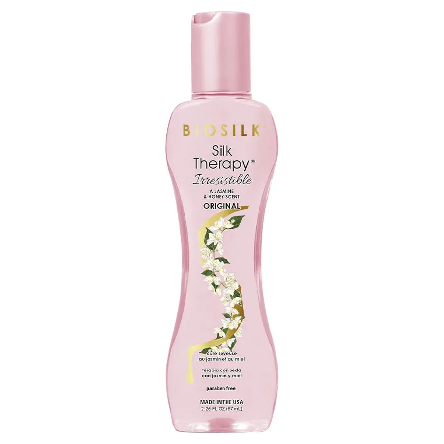 Give your hair weightless replenishment with the BioSilk Silk Therapy - Irresistible. This leave-in treatment replenishes moisture, repairs, and protects to create a silky, smooth shine and tames frizz. With scent notes of sheer jasmine petals, sweet honey, dewberry, vanilla, patchouli, and pink rose to create an explosion of fragrance.