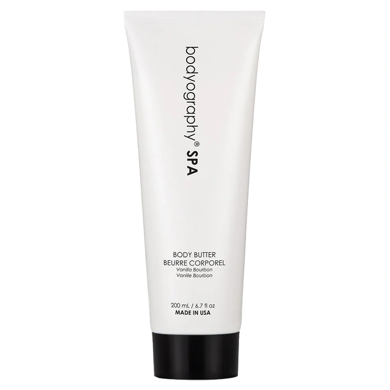 The Bodyography Spa Body Butter is packed with rich oils, hydrating algae, and moisturizing butter to help visibly restore and improve the skin's firmness while also providing long-lasting hydration. This body butter revitalizes and improves the skin texture and is infused with glycerin, ceramides, and over 8 powerful oils. The Bodyography Spa Body Butter utilizes the moisturizing and healing benefits of shea butter, cocoa butter, and squalene to help lock in hydration and provide the skin with a healthy-looking sheen. It also includes Algae Extracts to hydrate and plump the skin visibly. This body butter is ideal for all skin types, effortlessly penetrates the skin, and features a divine fragrance of vanilla bourbon.