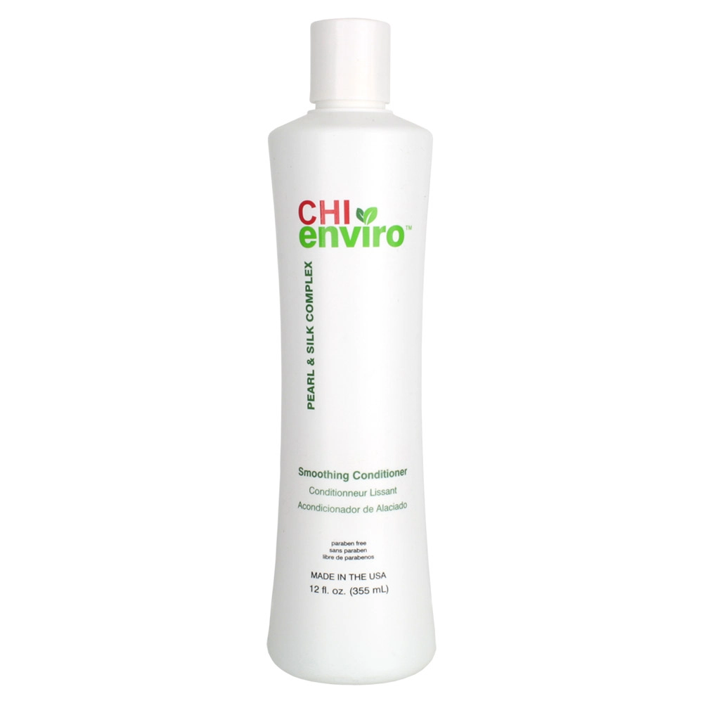 The Chi Enviro Smoothing Conditioner is formulated with a pearl and silk complex to provide maximum moisture and smoothness to frizzy, uncontrollable hair. Silk and Pearl smooth each strand, eliminating up to 95% of frizz without weighing down your locks. It penetrates deep into the cortex of the hair shaft and quenches dryness from within. This conditioner will leave your hair free of tangles and with an incredible body and exceptional shine. Formulated with the highest quality ingredients, this innovative formula was designed to combat frizz and humidity for all hair types.