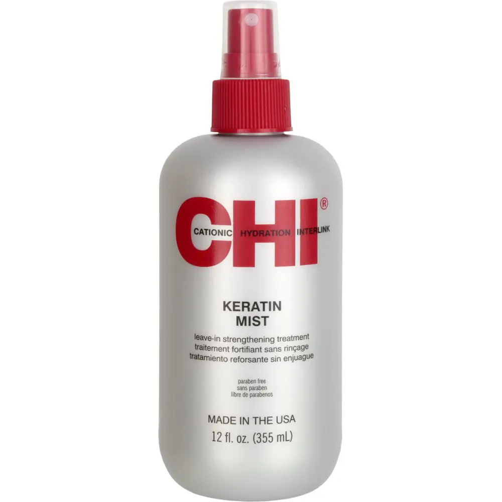 Instantly boost your hair's strength with the CHI Infra Keratin Mist. This leave-in-strengthening treatment not only infuses your hair with strength but it also boosts hair's elasticity, evens out hair's porosity levels, and protects hair from the daily use of thermal styling tools. Formulated with Cationic Hydration Interlink and proteins for strength, protection, and softness.