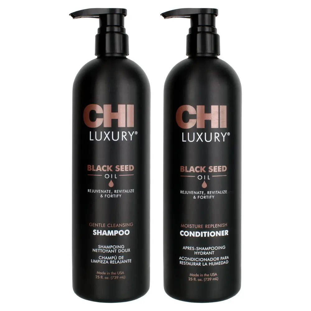 Experience the ultimate in gentle cleansing with CHI Luxury Black Seed Oil Blend Gentle Cleansing Shampoo. This shampoo combines a gentle touch with effective cleansing power and is specially crafted to care for your hair. Immerse yourself in a luxurious lather that effortlessly removes impurities, leaving your hair feeling refreshed and revitalized. Enriched with the nourishing properties of Black Seed Oil, this shampoo goes beyond cleansing alone. Experience the transformative effects of this exotic oil as it breathes new life into your hair, promoting fuller and thicker strands. Discover a world of enhanced volume and body as essential nutrients and hydration work their magic, creating a gorgeously voluminous and lush appearance. Your hair becomes fortified from within with every use, strengthening each strand.