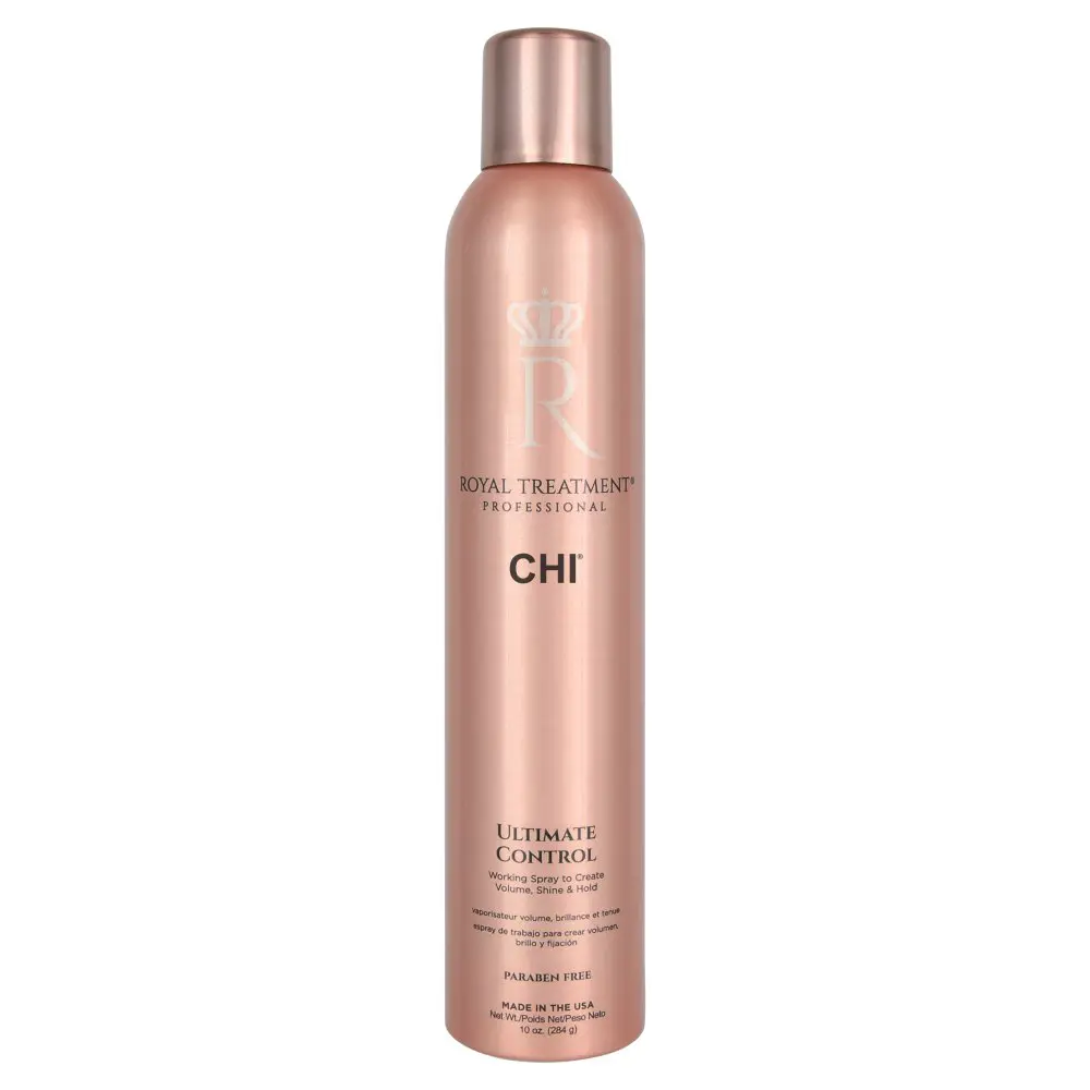 A multi-tasking hair spray, CHI Farouk Royal Treatment Ultimate Control can be used as both a styling spray and a finishing spray! Ideal for scrunching, blow dry styling, and shaping, this versatile spray provides all-day hold with amazing volume and high shine. The CHI Royal Treatment Ultimate Control Working Spray works well in all hair types and textures and gives your style long-lasting hold with flexibility. The CHI Royal Treatment Ultimate Control Working Spray is infused with White Truffle and Pearl to provide natural UV protection.