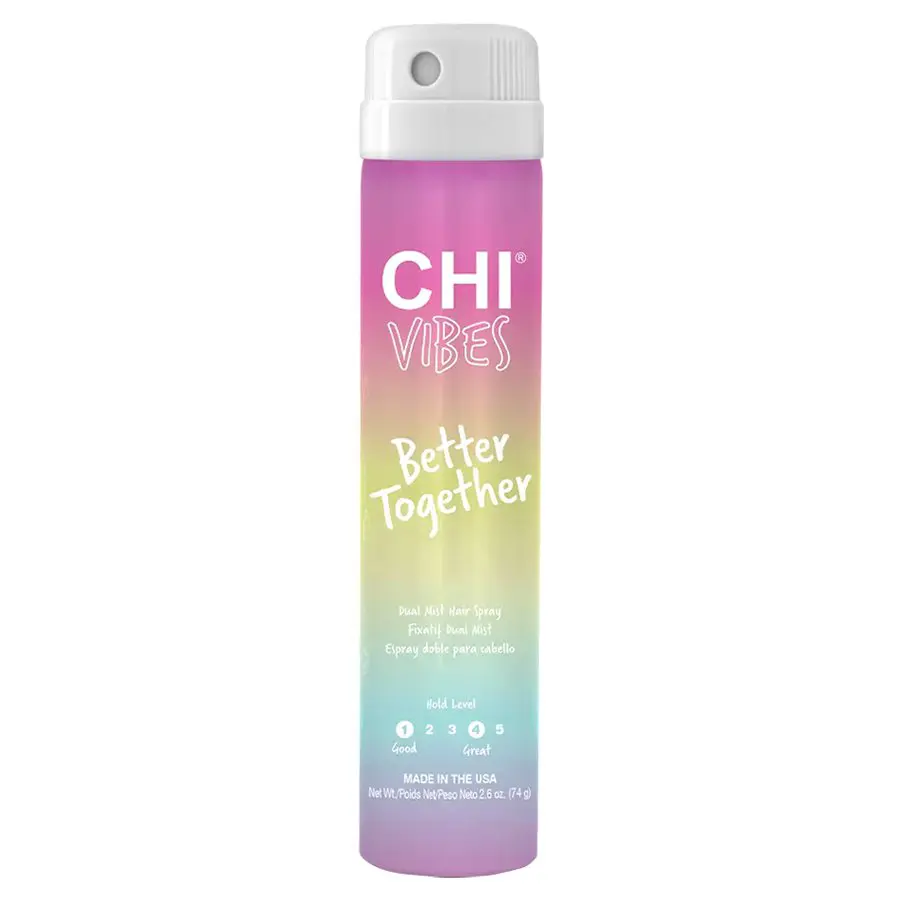 Give your hair either good hold or great hold with the CHI Vibes Better Together Dual Mist Hair Spray. Because two is always better than one, this unique adjustable spray gives you the flexibility for multiple layers of hold to keep your style in place. "Good" hold is designed more for your beachy waves and taming flyaways, whereas the "great" hold provides a stronger hold for updos, braids, tight curls, and slicked-back ponytails.