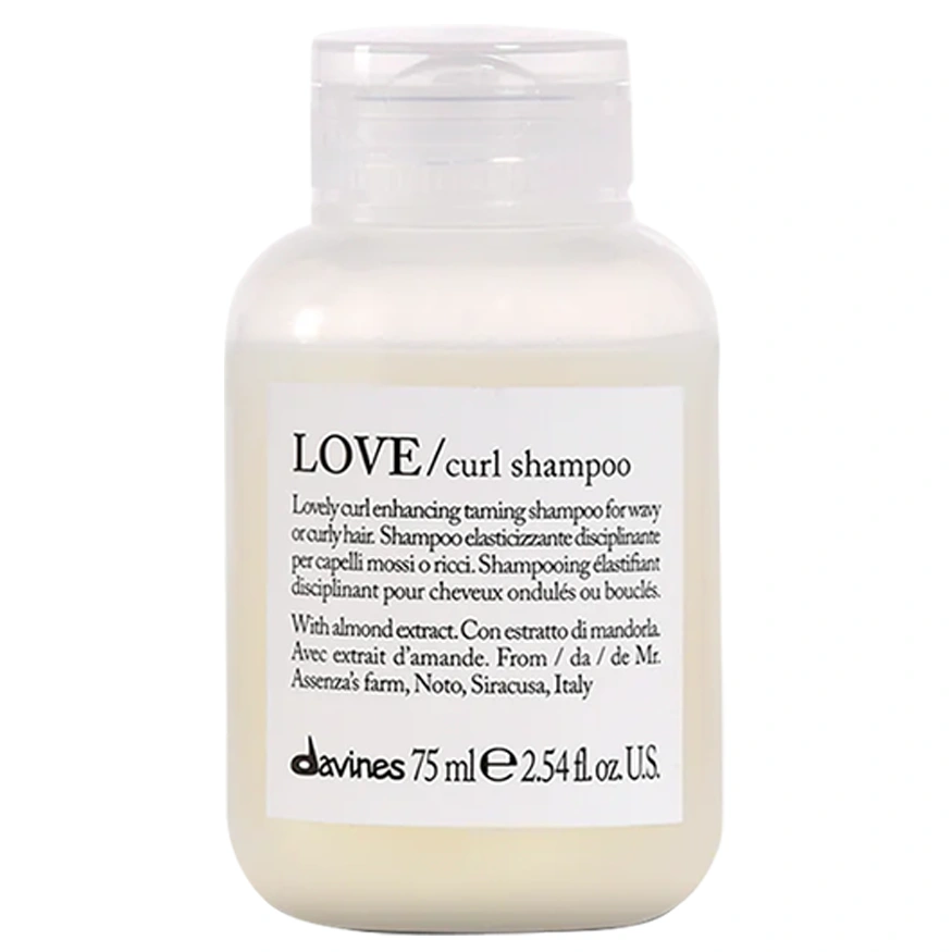 The Davines Love/ Curl Shampoo is an enhancing and taming shampoo that is ideal for curly and wavy hair types. This shampoo provides you with volumized and soft curls as it deeply hydrates with its gentle formula. Moisturizing and boosting hair's elasticity, this curl-enhancing shampoo leaves hair softer and lighter with enhanced volume that won't compromise texture. The Davines Love/ Curl Shampoo uses the natural active ingredient almond extract sourced from the farm of Mr. Assenza in Noto, Siracusa, Italy, as part of Slow Food Presidia. Almond extract is sustainable and rich in Proteins, Vitamins B and E, Unsaturated fats, and Minerals (magnesium, iron, potassium, copper, and phosphorus). This helps to provide hair strands with hydration, elasticity, and volume. The Davines Love/ Curl Shampoo has a creamy texture that forms a silky lather and features a fragrance of refreshing citrus and floral bouquet notes, grounded in musky fragrance with green undertones.