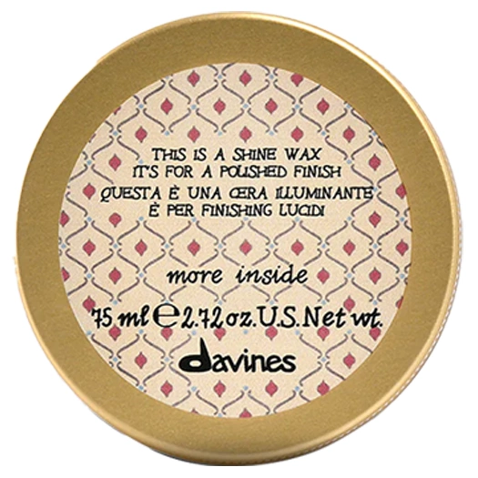 The Davines More Inside This is a Shine Wax is ideal for creating glossy and sleek structured styles. This light-hold, creamy wax is ideal for using to create to polish a slicked-back look or up-do without leaving hair sticky or heavy. This wax's lightweight formula is easily reworkable, it gives flexible support. When used with hot tools, the Davines More Inside This is a Shine Wax adds body to the hair, making it soft and shiny. This shine wax is formulated with precious blends of active ingredients that are paraben-free to enhance styling and finishing performance.