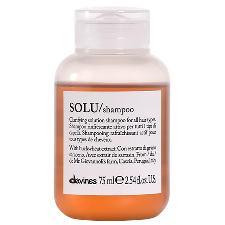 The Davines Solu/ Shampoo is a deep-cleansing shampoo that removes the residue of styling product buildup that can accumulate on the hair strand. This shampoo features a rich, airy foaming lather that makes the hair exceptionally clean. The Davines Solu/ Shampoo helps to soften hair strands and leave it with incredible shine as it instantly refreshes the hair and scalp. This shampoo is infused with Valtellina buckwheat extract grown on Mr. Patrizio Mazzuchelli's farm in Teglio, Sondrio, Italy as a part of Slow Food Presidia. This key ingredient is rich in proteins, antioxidants, amino acids, and mineral salts, especially iron, zinc, and selenium. This helps to promote hair and scalp health and is ideal for all hair types and textures.