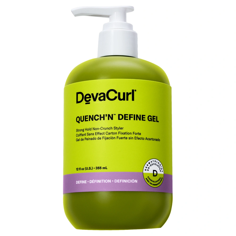 The DevaCurl Quench'N Define Gel is a strong-hold, no crunch styler that provides curls and coils with long-lasting hydration. This curl gel is ideal for those with dry, medium to coarse curls and delivers lasting curl definition for up to seven days. The DevaCurl Quench'N Define Gel additionally controls frizz, without leaving behind any unwanted flaking! This hair gel is ideal for wash-and-go styles or protective styling. The DevaCurl Quench'N Define Gel locks in hair hydration for up to five days and is designed to enhance curl elongation and shine. This hair gel lastly provides your style with humidity protection and leaves strands with a fragrance of tropical fruits.
