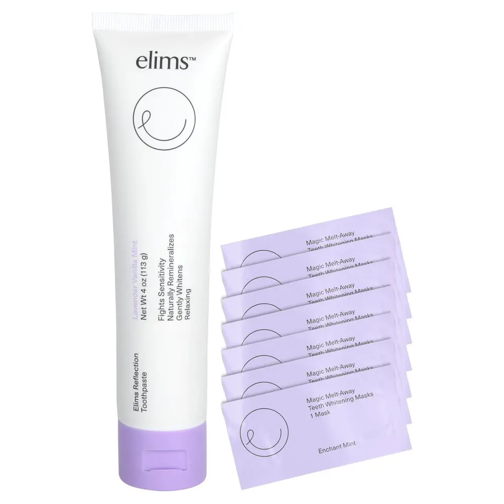 Give your teeth the best in oral care and whitening with the Elims Lavender Vanilla Mint Toothpaste & Teeth Whitening Mask Set. This toothpaste and whitening mask set were crafted by dentists to remineralize your enamel and fight against sensitivity, while also providing strong whitening abilities.