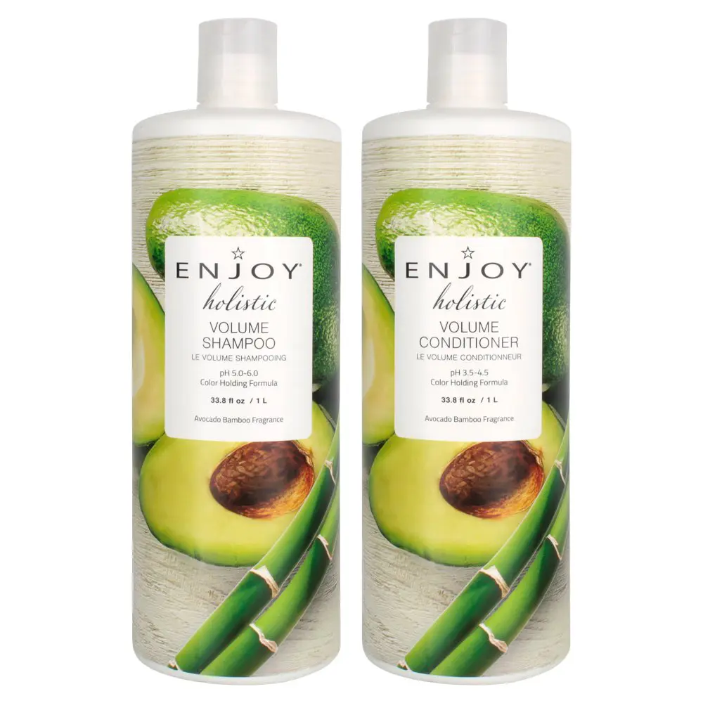 The Enjoy Holistic Volume Shampoo is a gentle cleansing shampoo that cleanses hair strands while delivering ample volume and body. It is specially formulated to address the needs of individuals with fine hair. This shampoo not only provides a thorough cleanse but also leaves the hair full of softness and lightweight moisture. The unique formula of the Enjoy Holistic Volume Shampoo helps to enhance the natural volume of your hair, making it appear fuller and more voluminous. It does so without weighing down the hair or leaving any residue behind. This makes it an excellent choice for those who desire a boost in volume without compromising on the softness and manageability of their hair. In addition to its volumizing properties, this shampoo also offers gentle yet effective cleansing. It removes impurities, excess oil, and product buildup from the hair, leaving it refreshed and revitalized. The gentle nature of the shampoo ensures that it doesn't strip the hair of its natural oils, maintaining a healthy balance and preventing dryness.