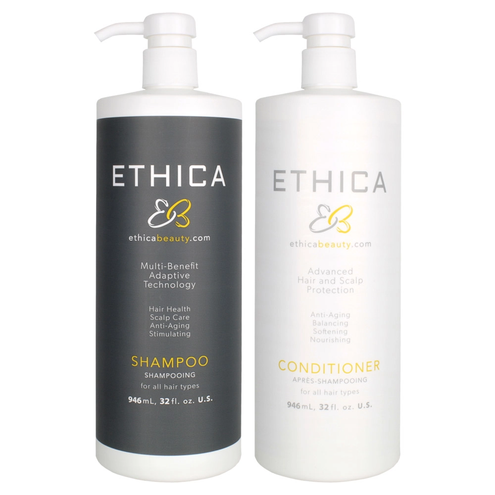 Maximize the potential of your hair with the Ethica Beauty Anti-Aging Daily Shampoo & Conditioner Set. An anti-aging shampoo and conditioner designed to deliver maximum benefits to the scalp, follicle, and hair shaft. Accelerates the speed of hair growth while reducing shedding. Improves volume, smoothness and shine and, reduces frizz and flyaways. Provides heat and color protection and has excellent wet combability and detangling. Hair is left soft with style memory. Can be used by both men and women.