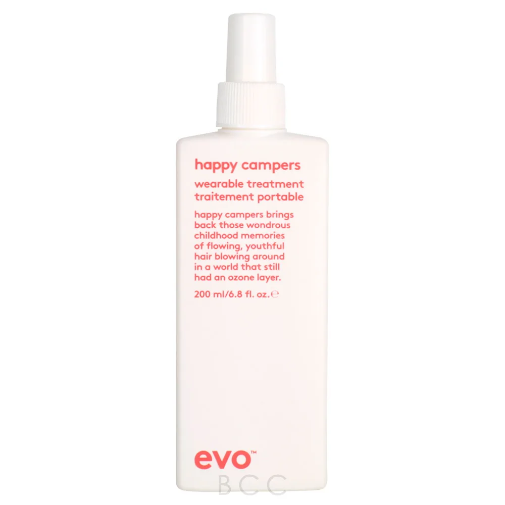 The Evo Happy Campers Wearable Treatment is a lightweight daily styling treatment to moisturize, strengthen, and protect hair while adding styling support. It helps to repair hair damage while enhancing styling by improving hair combability and speeding up your blow-drying time. The Evo Happy Campers Wearable Treatment is formulated with panthenol to add natural shine to the hair, while hydrolyzed quinoa helps to reduce hair breakage and retain hair color vibrancy. It also provides hair with protection from UVA and UVB damage from the sun and heat. The Evo Happy Campers Wearable Treatment features a dual delivery nozzle and can be sprayed directly onto the hair or sprayed into the hands as a cream.