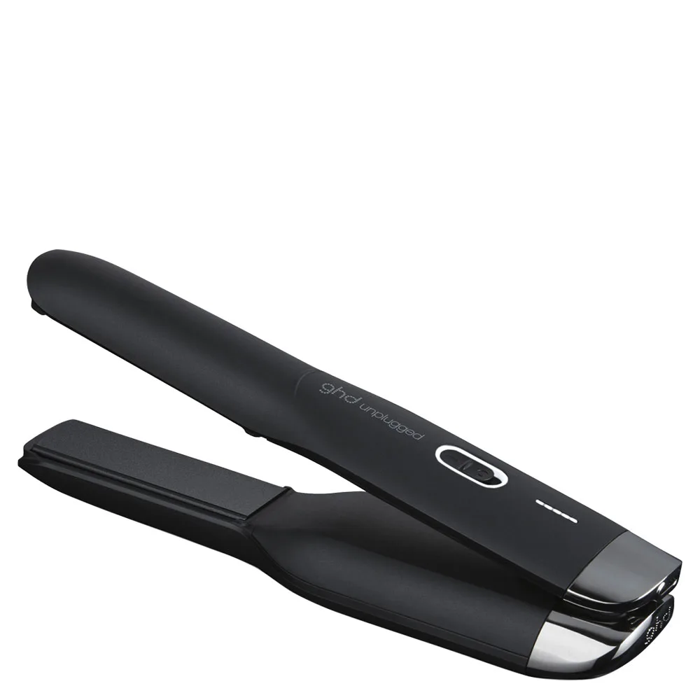 Keep your style looking salon-fresh anytime, anywhere with no cords attached with the GHD Unplugged Styler - Cordless Flat Iron. This cordless on-the-go styler guarantees the performance of a full-sized ghd flat iron in a flight-friendly size. Allowing 20 minutes of cordless styling time, this flat iron has a pre-set heat setting to the safe-for-hair temperature of 365 degrees F. Featuring ceramic-coated plates that glide through hair snag-free to deliver salon-sleek results with 65% more shine! Coming with a luxe heat-resistant carry case and USB-C charging cable to protect and secure your styler while on the go, this iron is a must-have for any busy traveler!