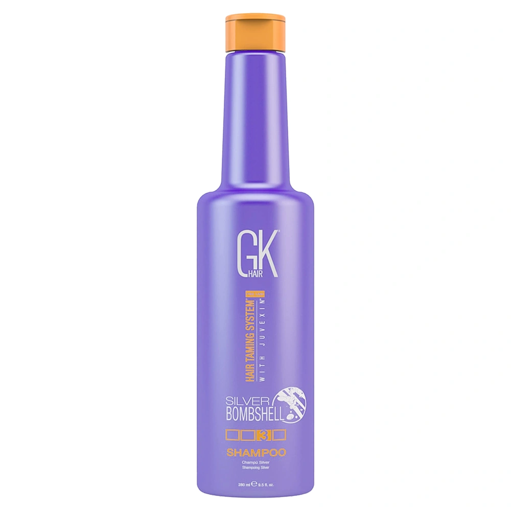 Apply Silver Bombshell Shampoo to wet hair. Step 2: Massage to create slight lather. Step 3: Rinse well, finish and style with GKhair styling products.