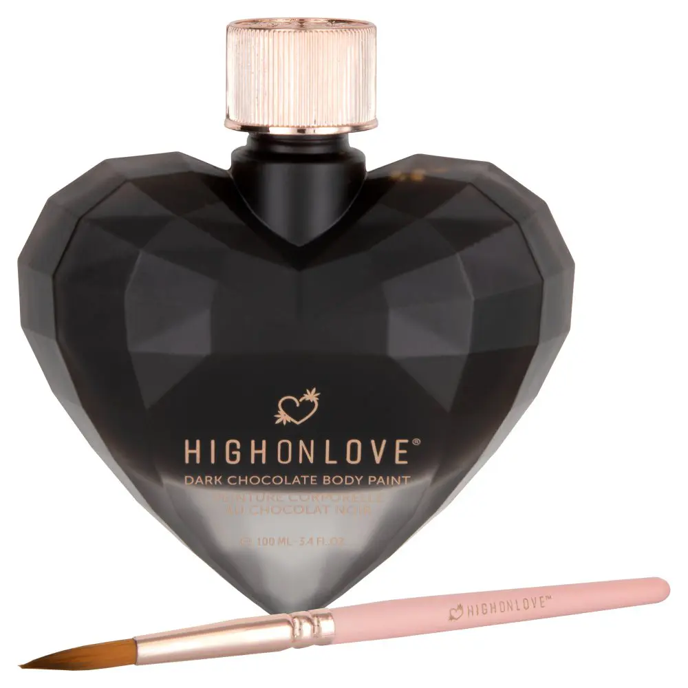 The High On Love Dark Chocolate Body Paint is a luxurious and rich dark chocolate body paint that makes for a tempting lover's night in! This edible body paint comes in a stunning heart-shaped glass bottle with an included paintbrush applicator that makes applying this Dark Chocolate Body Paint simple and quick. The High On Love Dark Chocolate Body Paint requires no refrigeration and is the perfect addition to your best night in yet!