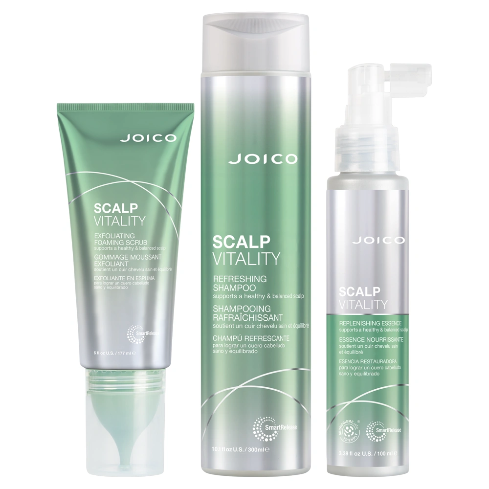 The Joico Scalp Vitality Trio is your ideal set for creating a healthy scalp environment. This powerful trio is designed to help balance out your scalp's microbiome, the natural barrier that acts as your scalp’s first line of defense.