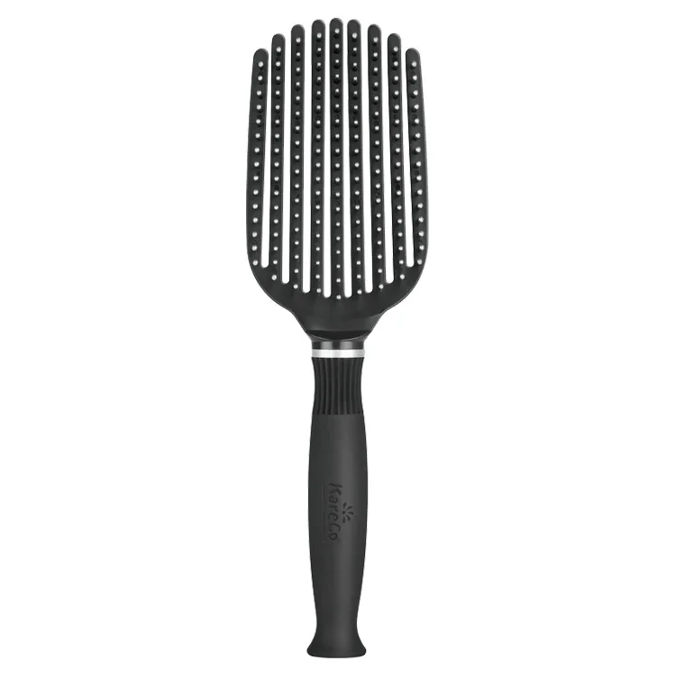 Show your tangled and mangled hair who's boss with the KareCo Tangle Buster Brush. Detangle, smooth and shape large sections of wet or dry hair with this unique flexible paddle brush and iconic bristles. This brush gently massages and glides as it eliminates knots, making this perfect for sensitive scalps and protecting hair of all textures from breakage.