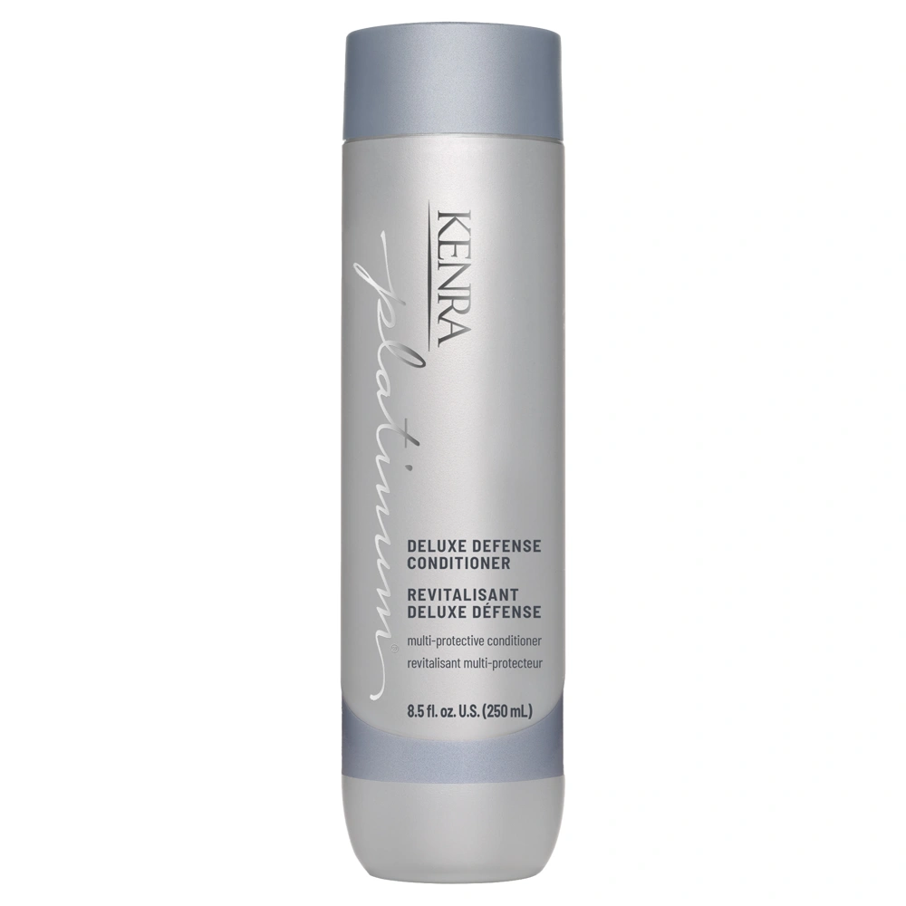 The Kenra Professional Platinum Deluxe Defense Conditioner is a strengthening and protective conditioner that is ideal for all hair types and textures. This conditioner is designed to reduce hair breakage by up to 91 percent, while protecting strands from breakage against styling and unwanted color loss. The Kenra Professional Platinum Deluxe Defense Conditioner helps to enhance and lock in hair hydration, provides long-lasting style effects, and maintains hair color vibrancy. This multi-protective conditioner leaves hair with enhanced shine levels, vibrant color, and incredible strength and protection. The Kenra Professional Platinum Deluxe Defense Conditioner is both paraben and sodium chloride-free.
