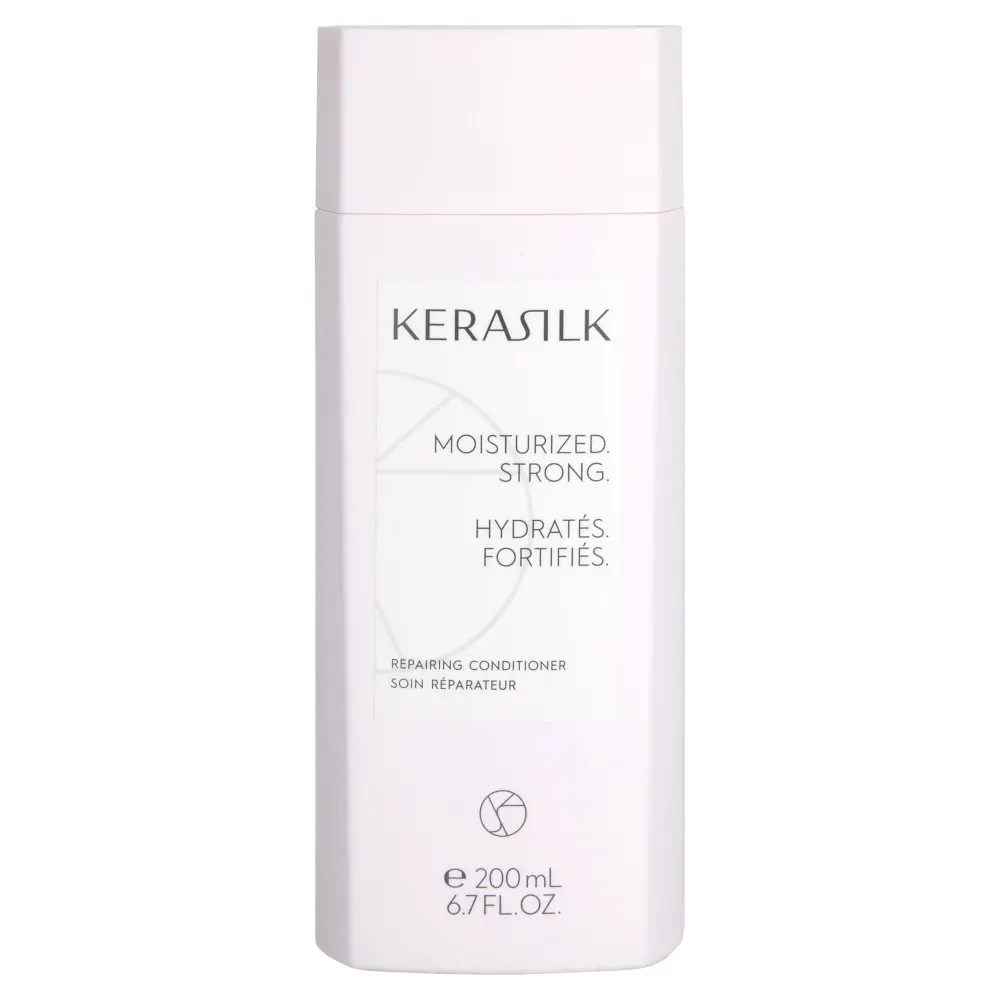 The Kerasilk Repairing Conditioner is formulated without dyes, silicones, sulfates, mineral oil, or microplastics, and has a vegan formula. Ideal for dry, thirsty, stressed, and damaged hair, bleached or chemically-treated hair.