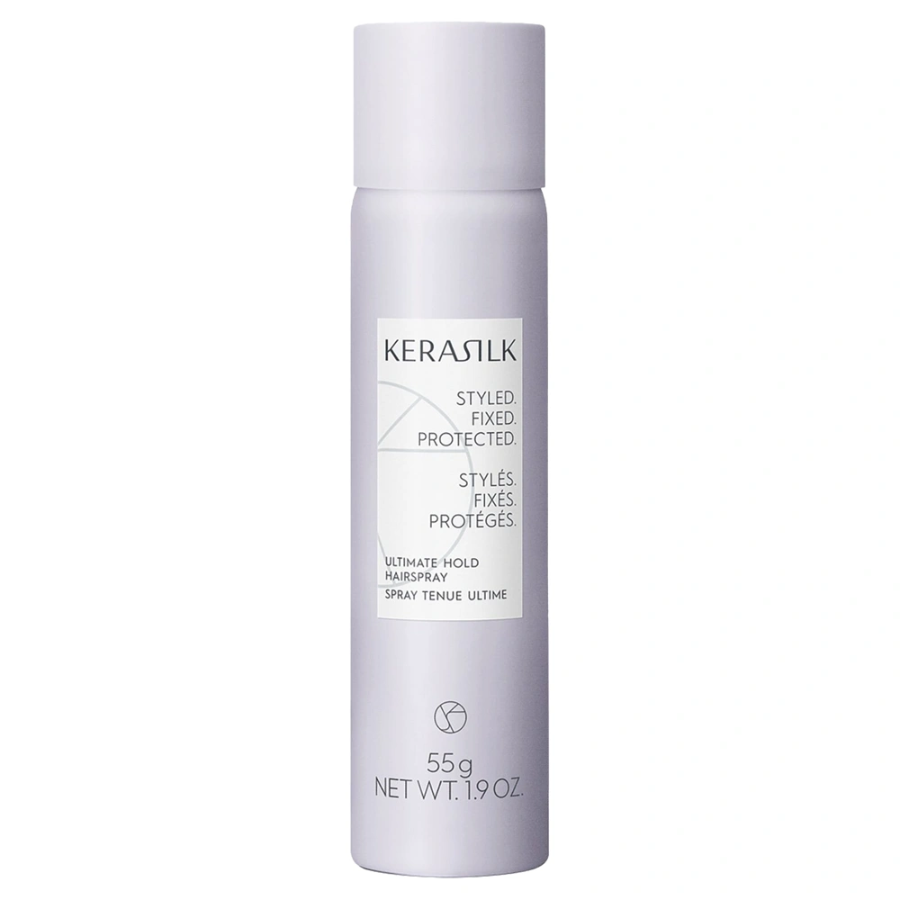 The Kerasilk Ultimate Hold Hairspray is an ultra-strong and fast-drying hairspray that is ideal for all hairstyles that require a little extra precision and styling support. This hairspray is designed to deliver excellent shape memory, long-lasting humidity protection, and a satin shine finish to the hair. The Kerasilk Ultimate Hold Hairspray provides strands with frizz and humidity resistance for up to 72 hours and helps to preserve hair elasticity. This hairspray is infused with Biomimetic Silk and Blue Lotus Extract. Blue Lotus Extract is enriched with minerals like iron, copper, and vitamins C and B. All these help to improve the hair's strength, shine, and overall health. Biomimetic Silk helps to repair and protect hair from pollution and harmful UV rays that tend to dull color over time. The Kerasilk Ultimate Hold Hairspray is your perfect styling support product to leave your styles finished, locked in, and with a flake-free finish.