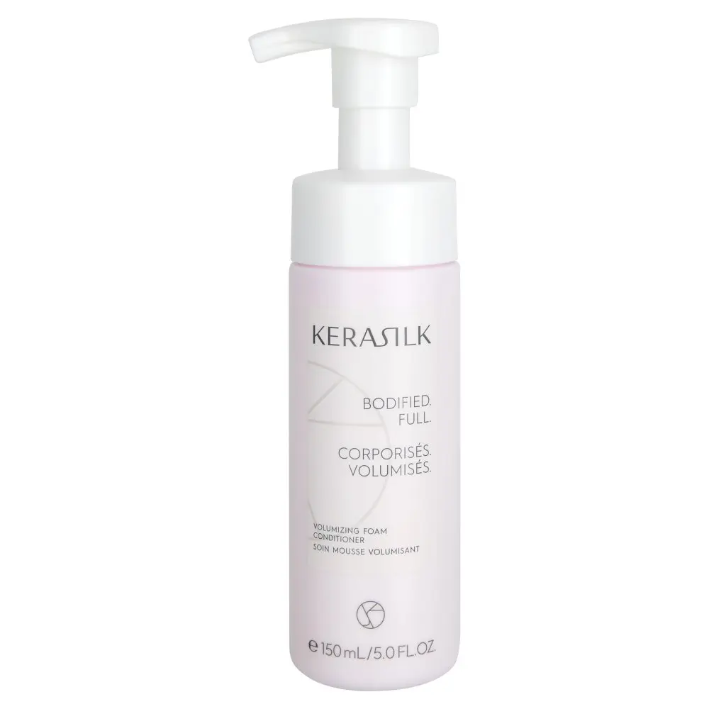 The Kerasilk Volumizing Foam Conditioner is formulated without dyes, silicones, sulfates, mineral oil, or microplastics, and has a vegan formula. Ideal for fine, limp, flat hair.