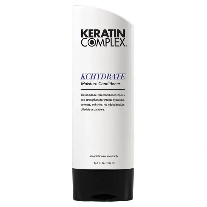 The Keratin Complex KCHYDRATE Moisture Conditioner is a lightweight hydrating conditioner designed to help replenish and rehydrate normal to dry hair strands from the inside out! The Keratin Complex KCHYDRATE Moisture Conditioner is infused with a rich protein blend of quinoa, lentil, and chickpea seed extracts to strengthen, smooth, and soften hair strands, while hyaluronic acid and borage oil help combat signs of aging hair while adding shine. This conditioner is formulated without parabens or sodium chloride and provides hair with next-level hydration that is inspired by the beaches of South Florida. The Keratin Complex KCHYDRATE Moisture Conditioner features a fragrance blend of candied apples, whipped cream, and delicate rose petals to leave your hair smelling just as good as it feels.