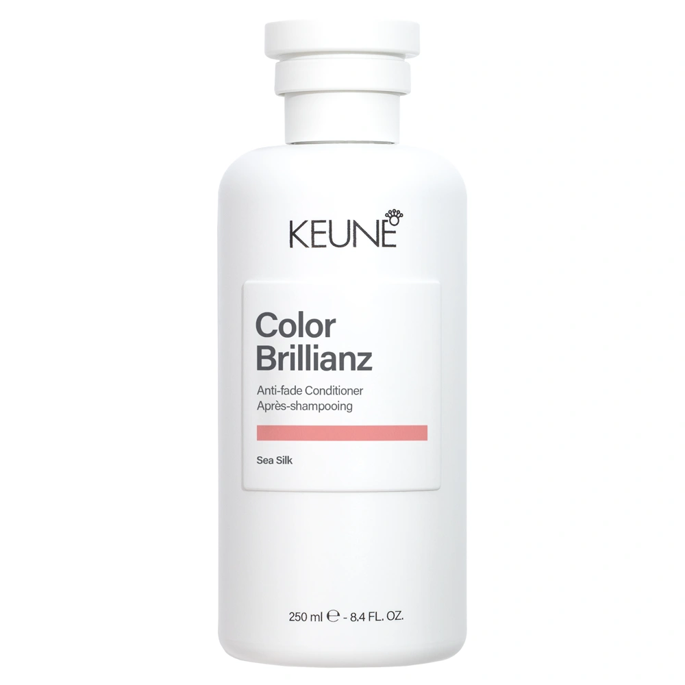 The Keune Color Brillianz Anti-fade Conditioner is an extremely nourishing and color-safe conditioner that helps to seal down the hair's cuticle to lock in color vibrancy and shine. This conditioner provides hair with protection against harmful UV rays and pollution. The Keune Color Brillianz Anti-fade Conditioner is infused with Sea Silk Technology and Sunflower Extract. Sea Silk Technology features a potent blend of marine-derived proteins and nutrients to help strengthen, smooth, and replenish hair's moisture. Color-treated hair tends to be more fragile and prone to breakage. This technology fortifies the hair fiber, seals in hydration, and enhances the hair's overall silkiness to protect its integrity. Sunflower Extract is a powerful and natural ingredient that is known for its antioxidant-rich and UV-protective properties. This extract forms a protective barrier on the hair to shield strands from color-dulling environmental aggressors, such as pollution and UV rays. This helps prevent color from oxidizing and fading too quickly, helping your color to stay fresh and true to tone longer. The Keune Color Brillianz Anti-fade Conditioner helps extend color vibrancy for up to 8 weeks, and leaves hair with an ember fragrance of floriental-woody-gourmand with notes of citrus, warm coffee, and gourmand with notes of vanilla and tonka bean.