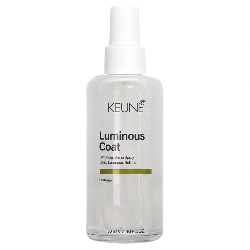 The Keune Luminous Coat Luminous Shine Spray is a weightless styling spray that provides hair with hydration, luminescent shine, and a silk-like finish. This shine spray protects strands against damage and humidity and shields hair from further damage. The Keune Luminous Coat Luminous Shine Spray is infused with Keune's Fiber Sealing Technology and Panthenol. Keune's Fiber Sealing Technology is a specialized silicone copolymer that is known for its multifunctional benefits. It is designed to reinforce, smooth, and protect each and every hair strand and deliver a smooth and luxurious feel. This advanced technology binds to damaged areas of the hair and forms a flexible and breathable protective layer. This layer helps to seal the hair fiber, reduce damage, prevent split ends, and restore hair's long-lasting strength and shine. Panthenol, or Pro-Vitamin B5, is an incredibly powerful humectant that penetrates deep into the hair shaft to deliver intense hydration and improve hair's elasticity and strength. This key ingredient additionally reduces hair dryness and smooths the hair's surface to enhance natural shine and leave your strands more manageable, supple, and resistant to damage. The Keune Luminous Coat Luminous Shine Spray is ideal for dull hair looking to boost strength and shine, and leaves hair with an aromyhrr fragrance of aromatic floral with a deep musky base, elevated with notes of juniper and incense.