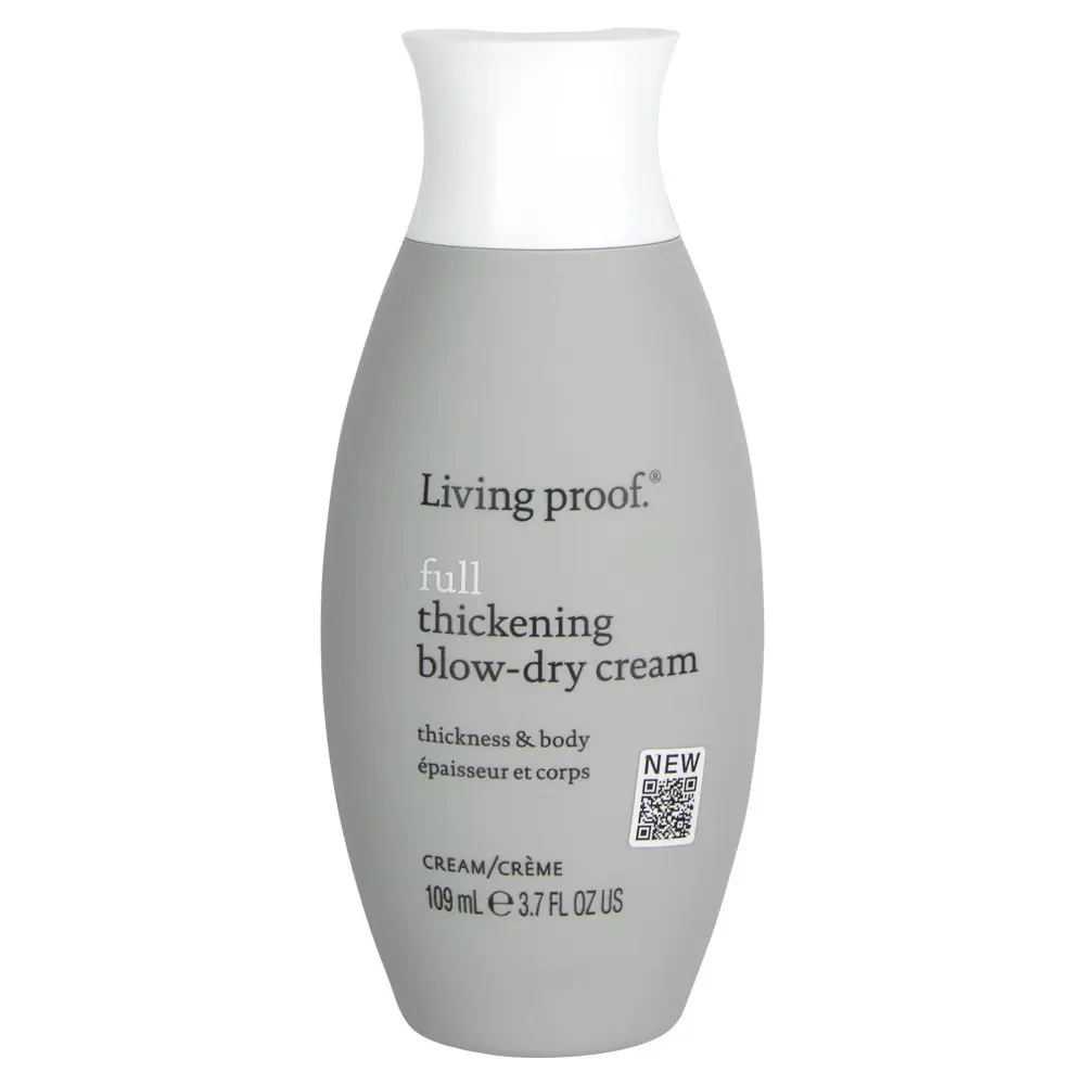 The Living proof. Full Thickening Blow-Dry Cream is an ultra-lightweight styling cream that adds thickness and conditioning to create styles with natural and long-lasting body and fullness. It delivers 30% thicker-looking hair strands, smoothness, and shine. This blow-drying cream protects hair from thermal damage up to 450 degrees Fahrenheit and gives styles longevity all day. The Living proof. Full Thickening Blow-Dry Cream is formulated with Amaranth Peptides to plump each hair fiber to create a bouncy and full look. Hydrolyzed corn starch provides light oil absorption to help with style longevity, while an optimized resin blend adds lasting hold and enhances body. Lastly, the Living proof. Full Thickening Blow-Dry Cream uses mushroom extract to provide hair with thermal protection and helps to prevent future damage from hot tool styling. This blow-dry cream is formulated without harmful ingredients like Phthalates, Sulfate, Paraben, Formaldehyde, and Silicones.