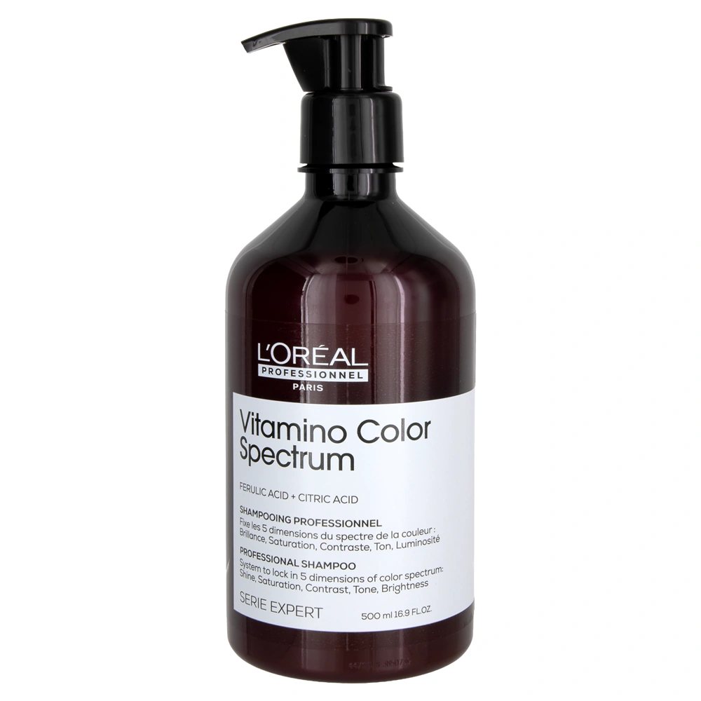 Loreal Professionnel Serie Expert Vitamino Color Spectrum Shampoo Features & Benefits: shine, saturation, contrast, tone, and brightness