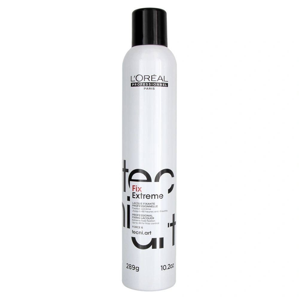 Delivering intense hold while creating shape memory, satin shine, and ultimate humidity protection. The L'Oréal Professionnel Tecni.ART Fix Extreme Fixing Lacquer provides a strong hold while adding fullness with lots of body. This hairspray's unique formula has two different types of holding polymers to provide a 48-hour hold, frizz control, and shine. The L'Oréal Professionnel Tecni.ART Fix Extreme Fixing Lacquer is the perfect finishing addition to lock in your style, no matter the conditions!