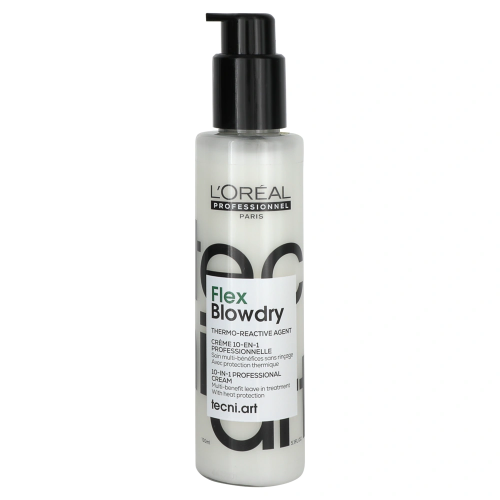 The L'Oréal Professionnel Tecni.Art Flex Blowdry Thermo-Reactive Agent is a lightweight cream that delivers a long-lasting, smooth blowout for up to 4 days and provides your hair with heat protection up to 450 degrees Fahrenheit. The L'Oréal Professionnel Tecni.Art Flex Blowdry Thermo-Reactive Agent is formulated with Stimuli-Responsive Serum technology, which provides the ultimate softness, manageability, and shine without weighing down the hair. The L'Oréal Professionnel Tecni.Art Flex Blowdry Thermo-Reactive Agent is also enriched with vegetable proteins and a blend of 17 amino acids that smooth down your hair's surface. This multifunctional cream allows you to straighten the hair or create voluminous hairdos with soft movement.