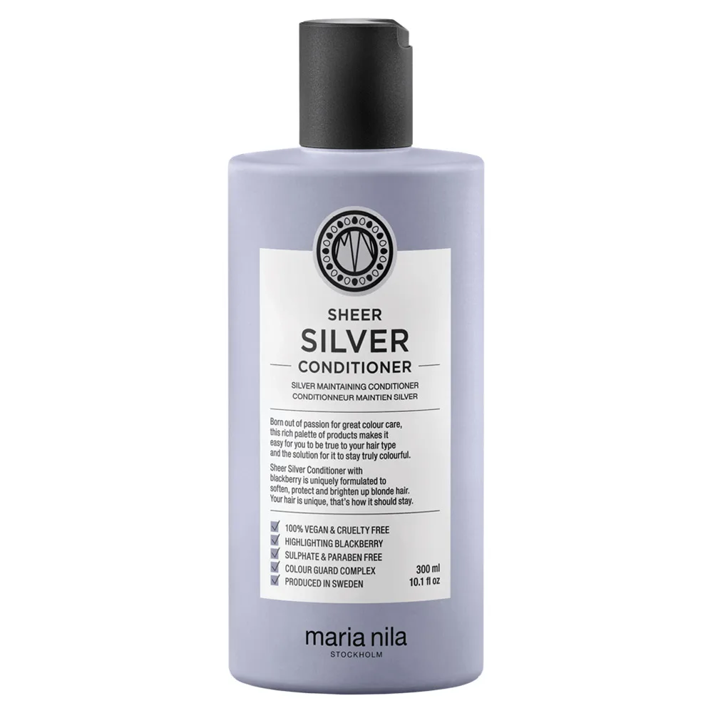 Detangle and soften that gorgeous blonde hair with this silver conditioner. Made with violet pigment and blackberry extract to neutralize golden shades in blond hair while reviving shine and strength to the hair structure. Has a color guard complex to reduce color loss associated with washing. Protects hair from damage caused by heat styling, UV rays and free radicals.