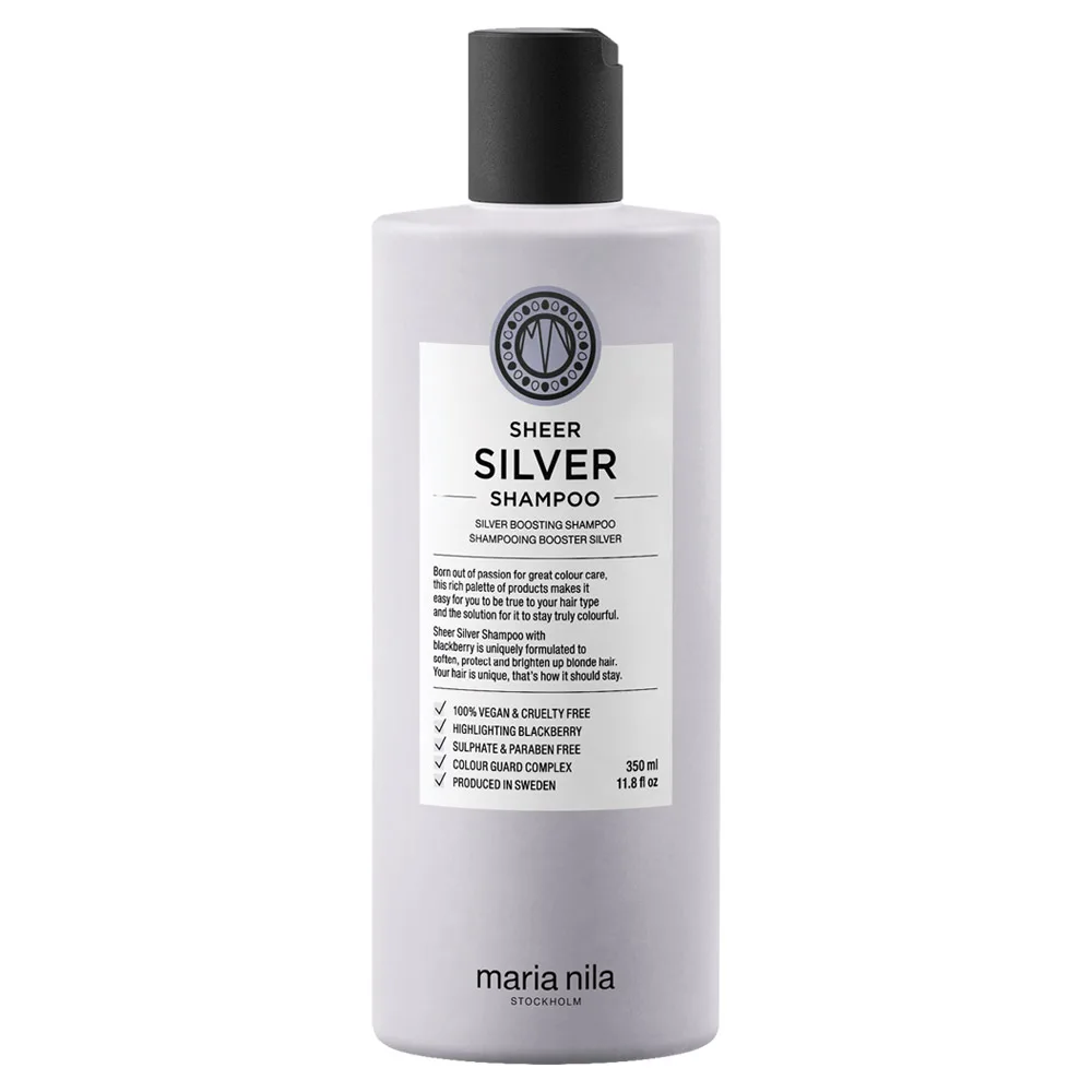 Step 2: For cooler tones, combine Sheer Silver Shampoo with the conditioner, and masque from the Sheer Silver series.