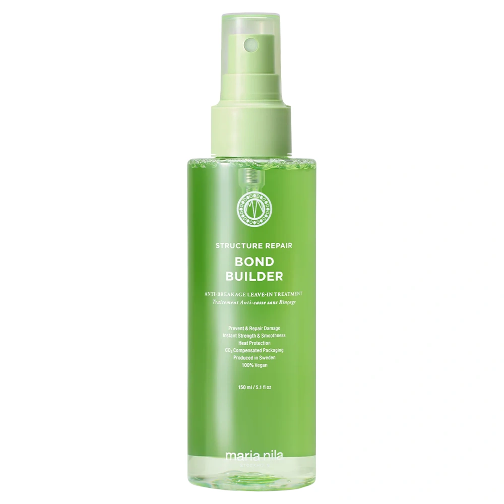 The Maria Nila Structure Repair Bond Builder is a multi-benefit anti-breakage leave-in treatment that is designed to protect hair's keratin structure to create stronger hair strands with each use. This leave-in treatment provides strands with thermal protection, instant shine, and incredible softness. The Maria Nila Structure Repair Bond Builder is ideal for those with fragile or chemically treated hair, and is infused with pre- and pro-bonding technologies. This treatment repairs existing hair damage and helps to protect against future damage. The bond-building technology helps to rebuild the hair's internal bonds and protect the hair's keratin structure, while amino acids improve the shine and strength of the hair and provides smoothness to both wet and dry hair. The Maria Nila Structure Repair Bond Builder additionally includes Biomimetic Chia Peptides, which proactively protect the hair shaft by creating a neo-cuticle on the hair to provide additional strength, support, and style-holding properties to the hair. Lastly, this leave-in includes Sunflower Extract and Quaternium-95 to shield hair from heat damage and preserve color vibrancy. This powerful antioxidant absorbs UV rays and protects bonds from becoming weak and damaged by sunlight. The Maria Nila Structure Repair Bond Builder is lightweight and non-greasy and features a fresh scent of green and florals, with notes of water lily, green apple, and pineapple.