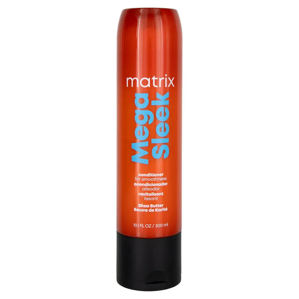 The Matrix Mega Sleek Conditioner optimizes moisture levels and creates a barrier against humidity. This conditioner adds shine, softness, and manageability, making it easy to blow dry hair straight. The Matrix Mega Sleek Conditioner helps to control rebellious and unruly hair strands, damages frizz, and protects hair strands from style-ruining humidity! This conditioner is formulated with Shea Butter to lock in moisture and smooth down frizz and flyaways, while also providing hair with UV protection. With each use of the Matrix Mega Sleek Conditioner, your hair will be left tamed, smooth, free from frizz, and full of healthy shine.