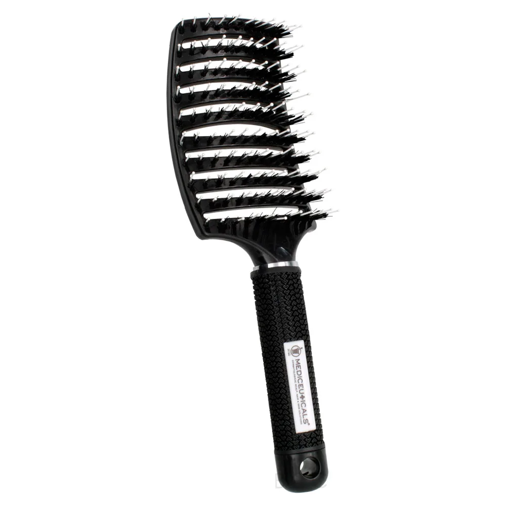 Smooth and detangle your hair with the Scalpro Detangling Brush. An innovative brush made to protect the scalp while quickly detangling and smoothing the hair and hair cuticles. Designed with small silicone pins that gently detangle hair while reducing frizz at the same time. Made with a curved body to comfortably fit the shape of your head for easy and efficient brushing. Works great for everyday use, heat styling and can be used on wigs and extensions.