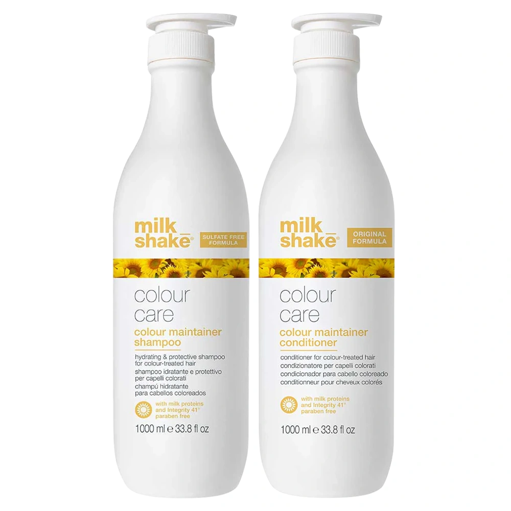 Keep your color-treated hair strands hydrated, radiant, and well-protected with the Milk_Shake Colour Care Colour Maintainer Shampoo & Conditioner Duo. The Milk_Shake Colour Care Colour Maintainer Shampoo is Sulfate Free and gently cleanses while revitalizing strands for hair that looks and feels its best! The Milk_Shake Colour Care Colour Maintainer Conditioner is a hydrating conditioner that leaves strands softer, shinier, and more radiant. This powerful duo is infused with Milk Proteins, Vitamin E, Wheat Proteins, and Integrity 41 Complex. The Milk Proteins in the Milk_Shake Colour Care Colour Maintainer Shampoo & Conditioner Duo provide deep conditioning and restoration to the hair, and Vitamin E prevents and counteracts the oxidative processes that can cause hair dullness and color-fading. Wheat proteins are included in this hair-transforming duo to help restore the hair's natural keratin, which is essential for hirs structure and strength. Lastly, the Milk_Shake Colour Care Colour Maintainer Shampoo & Conditioner Duo uses the Integrity 41 Complex to help protect hair against stress factors that can threaten hair's integrity, color intensity, and shine! This duo will leave your hair healthy, protected, full of shine, and with a delicious scent of sweet almond and vanilla bean, like a classic baked treat!