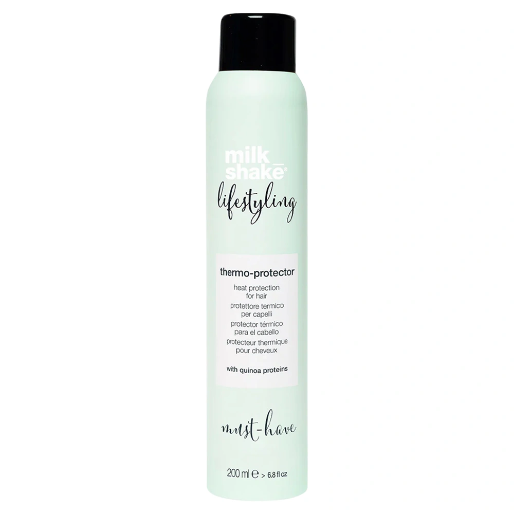 Protect your hair from thermal damage with the Milk_Shake Lifestyling Thermo-protector. This spray features an ultra-fine formula created to protect hair fibers from the heat of blow-drying, straightening irons, and curling wands/irons. The Milk_Shake Lifestyling Thermo-protector creates a protective layer over the hair shaft that helps to prevent split ends, breakage, and damage, while reducing drying time. This super lightweight spray is infused with Milk, Quinoa, and Silk proteins. Milk proteins provide hair with protective and conditioning benefits, helping to strengthen and provide resistance to the hair fiber, while Quinoa proteins help to protect hair color and prevent color-fading, increase manageability, and give shine to the hair. Lastly, the Milk_Shake Lifestyling Thermo-protector uses Silk proteins to form a film on the hair that provides hydrating, conditioning, heat protection, and protection from environmental stressors that can damage hair strands. This heat protection spray is ideal for all hair types and textures and leaves strands well-protected, healthy, and stronger. Lastly, the Milk_Shake Lifestyling Thermo-protector features a golden citrus haze scent with bright citrus, soft florals, and warm vanilla woods to provide a sweet and inviting scent.