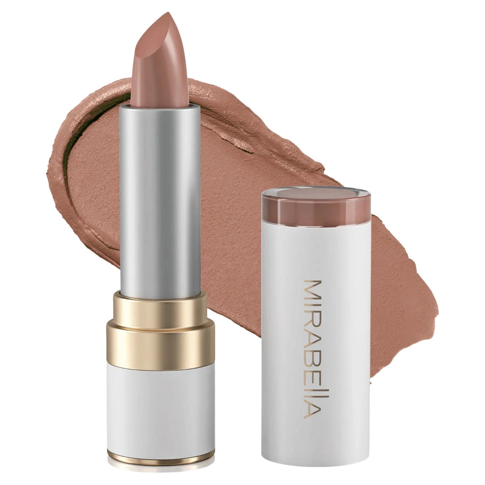 The Mirabella Sealed With A Kiss Lipstick features a weightless formula that glides on like silk to give your lips a pop of intense color. This lipstick's rich formula keeps the lips hydrated and conditioned, helping to avoid irritation and dry lips. The Mirabella Sealed With A Kiss Lipstick is infused with antioxidant Vitamin E and Argan Oil work together to draw in hydration and lock in moisture for pigment that lasts longer and stays gentle. Because of these incredibly conditioning ingredients, this lipstick glides easily over the lips, evenly distributing color for a stunning finish. This long-lasting stay-on lipstick provides hours of elastic color that will continue to look fresh throughout your day. No need to worry about looking dried out or patchy. The Mirabella Sealed With A Kiss Lipstick's richly-colored matte and shiny lipstick shades glide on smoothly with a supremely flawless finish. This lipstick is made with clean ingredients and is free from parabens, gluten, talc and is cruelty-free, for a guilt-free makeup experience.