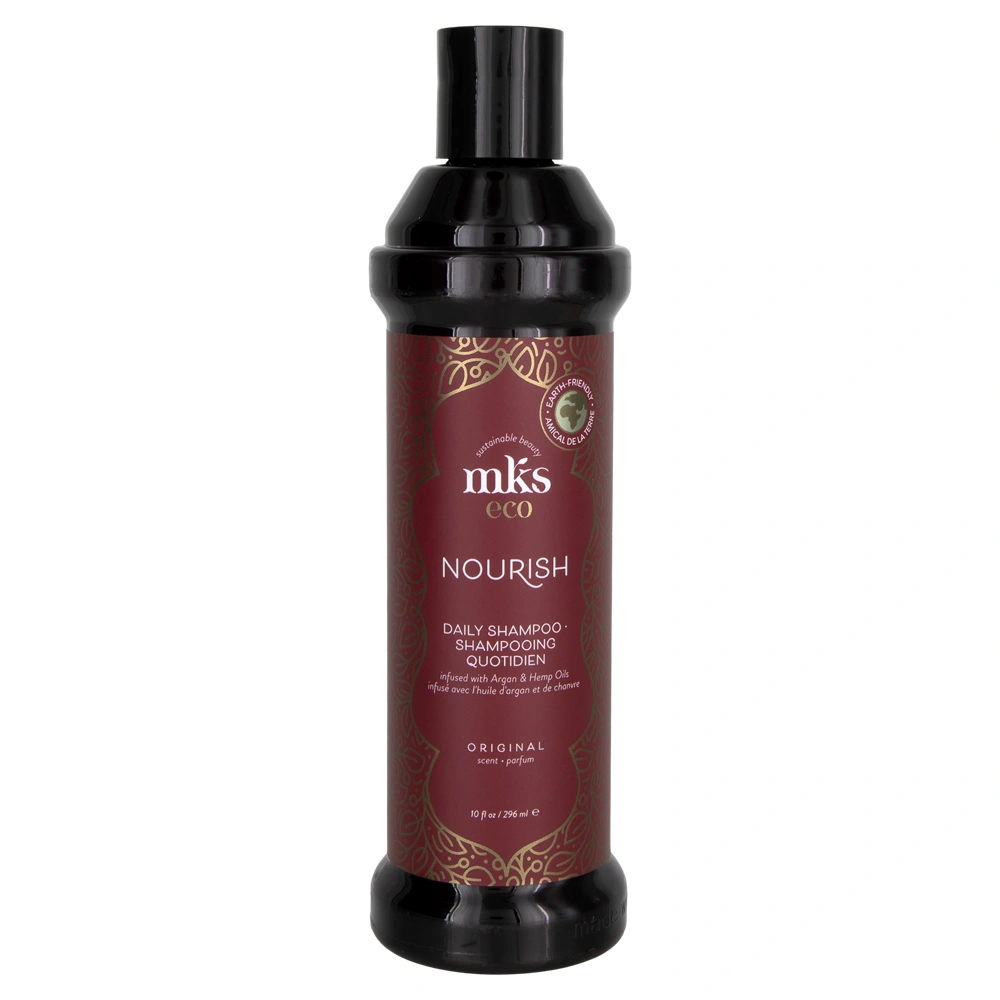 The MKS Eco Nourish Daily Shampoo - Original Scent is infused with rich botanicals to provide gentle cleansing for all hair types and textures. This shampoo helps to restore moisture to damaged and color-treated hair. It is additionally sulfate-free, paraben-free, has no animal testing and has no animal ingredients. The MKS Eco Nourish Daily Shampoo - Original Scent features a blend of nutrient-rich Argan Oil from Morocco, fortifying Hemp Seed Oil, Hydrolyzed Wheat Protein, and pure botanical extracts that gently cleanse, restore moisture, and strengthen the cuticle while enhancing hair's manageability.
