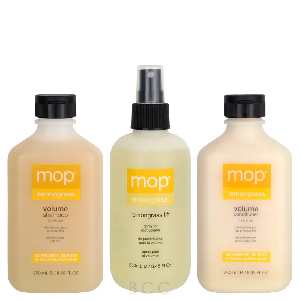 MOP Lemongrass Volume Shampoo: Apply a quarter-size amount of mop lemongrass shampoo to wet hair. Massage into hair and scalp and work into a rich lather. Rinse thoroughly and repeat if necessary. Follow with mop lemongrass conditioner.
