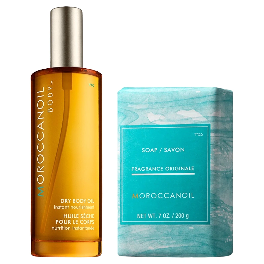 The Moroccanoil Glowing Skin Set features the Moroccanoil Soap Fragrance Originale paired with the Moroccanoil Dry Body Oil to help you achieve your most hydrated, happy, and glowing skin yet!