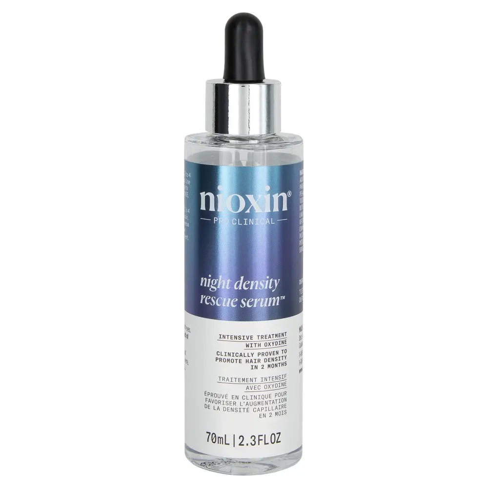 The NIOXIN 3D Intensive Therapy Night Density Rescue has been engineered to effectively promote hair density through a powerful blend of antioxidants known to neutralize free radicals on the scalp surface. This blend uses Oxydine24, which has been engineered to effectively promote hair density. The NIOXIN 3D Intensive Therapy Night Density Rescue is meant to be used in combination with the Nioxin 3-Step System Kit and promotes thicker and fuller hair density in 2 months.