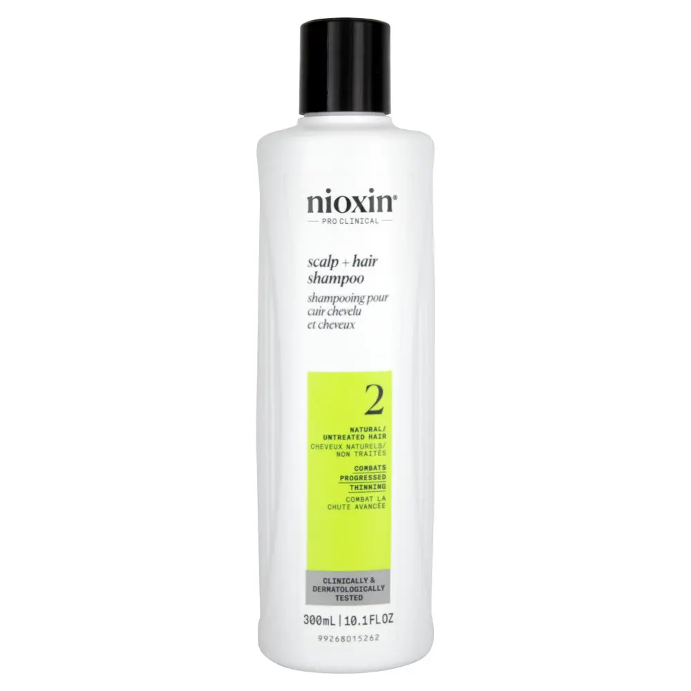 The NIOXIN System 2 Scalp + Hair Shampoo for Natural/Untreated Hair is specially designed for noticeably thinning, fine, natural hair. It delivers denser-looking hair and a healthy shine while protecting the scalp. Helps to remove follicle-clogging sebum, fatty acids, and environmental residues from the scalp skin, and hair. Cleanses to provide thicker-looking hair. Nioxin System 2 shampoo is a professional hair product featuring Activ-Renewal technology that helps remove sebum, fatty acids, and other environmental residue from the scalp and hair. Ideal for those with non-color-treated hair.