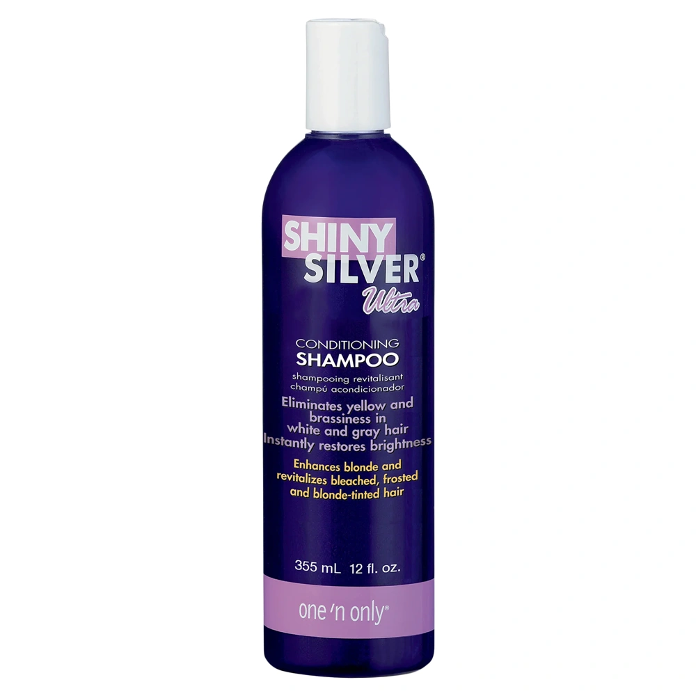 The One 'n Only Shiny Silver Ultra Conditioning Shampoo is a brightening shampoo that removes unwanted brassiness from your blonde, white, gray, and highlighted hair. This shampoo helps to enhance blonde hair and revitalize bleached and highlighted strands. The One 'n Only Shiny Silver Ultra Conditioning Shampoo is infused with violet and blue pigments to help counteract these unwanted pigments, while this shampoo additionally restores, conditions, and moisturizes damaged and fragile hair strands. The One 'n Only Shiny Silver Ultra Conditioning Shampoo additionally provides hair with strengthening benefits, leaving strands overall healthier and less prone to breakage. Say goodbye to brass and yellow, and hello to stunning, healthy hair strands.