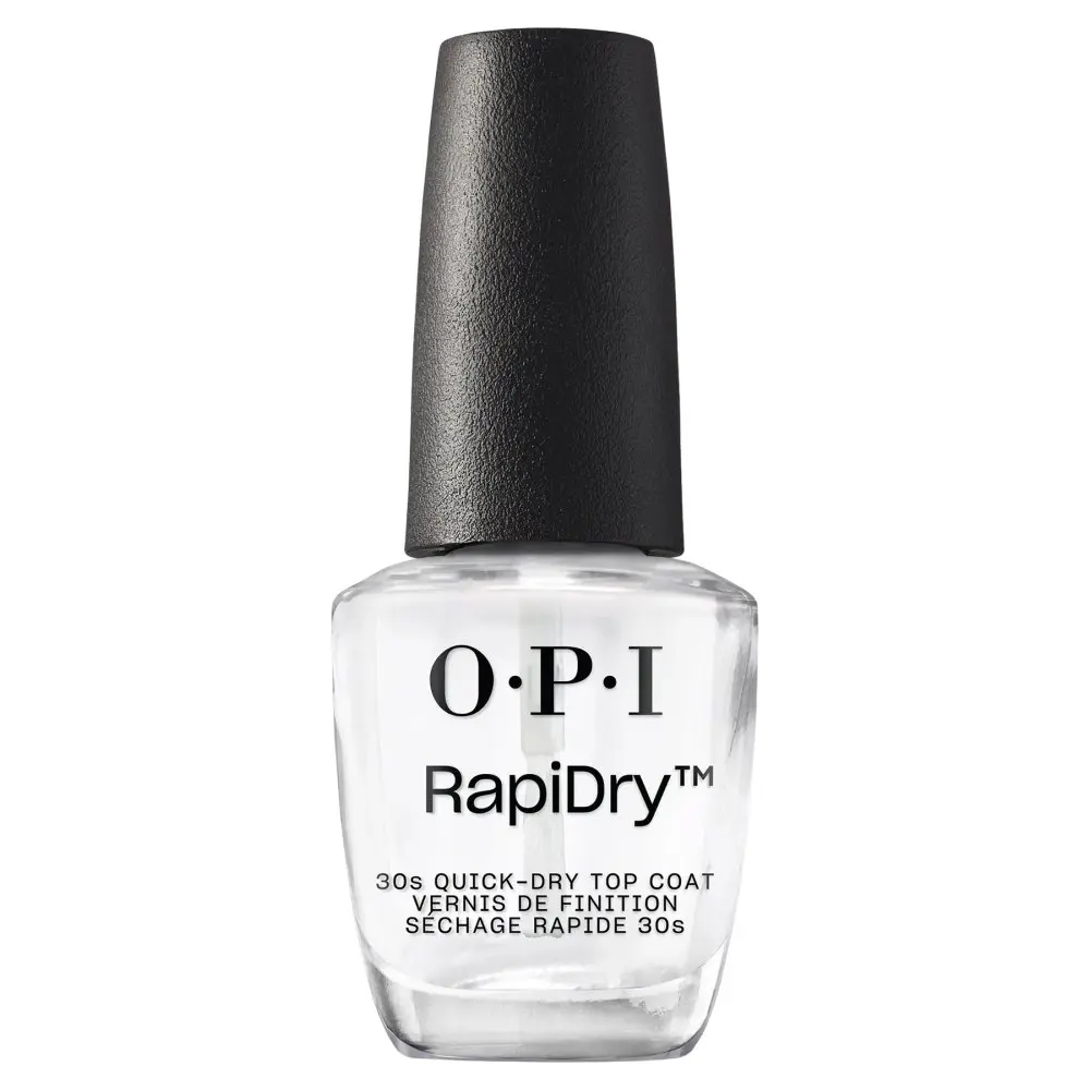 The OPI RapiDry Top Coat is a super fast-drying top coat that takes your mani from wet to set in 30 seconds flat! Dries to a tough, long-lasting, non-yellowing, high-gloss shine in minutes. For fast-drying nails with a high-gloss shine.