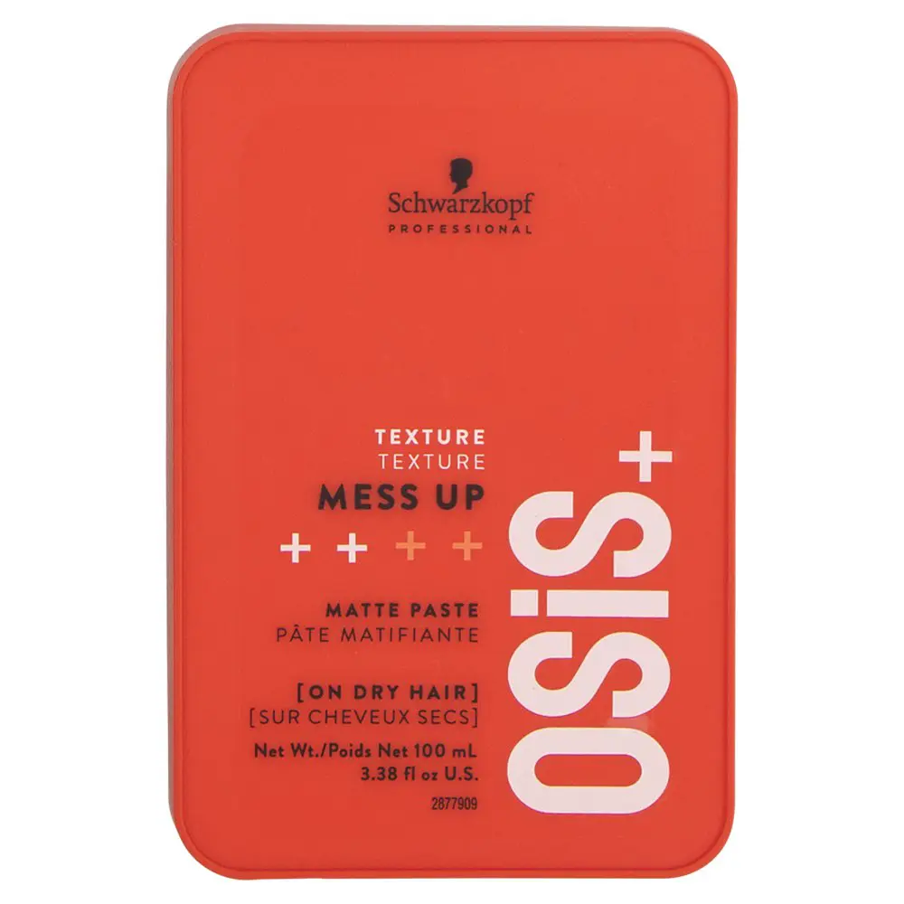 The Schwarzkopf OSiS+ Mess Up Matte Paste is a fibrous finishing paste that gives a matte finish for the latest textured looks! This paste provides the hair with grip and pliable movement, allowing you to recreate and remold your style time after time! Simply rub it in, smooth it down, and you're ready to go. The Schwarzkopf OSiS+ Mess Up Matte Paste instantly gives that trendy matte appearance with no mess and no fuss! Go natural, go wild, express yourself with the Schwarzkopf OSiS+ Mess Up Matte Paste!