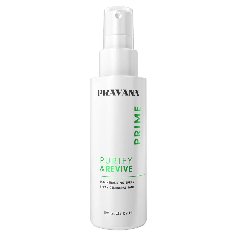 Purify & Revive Prime Demineralizing Spray gently removes hard water buildup while softening and smoothing. This potent-yet-gentle blend of lactic acid, green coffee, silk amino acids, and keratin proteins removes minerals without stripping away moisture. Lactic acid binds to hard water minerals transforming them into conditioning agents that soothe and strengthen scaly hair. This spray gives you weightless and lightly volumized locks.